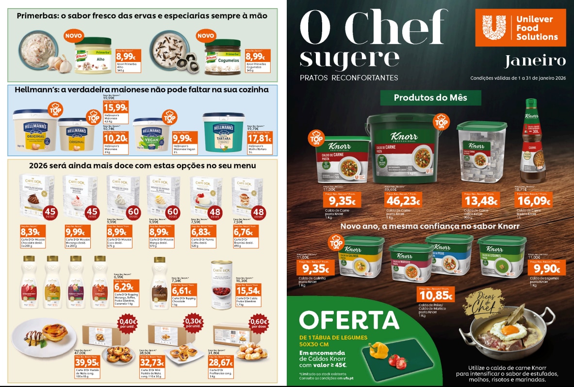 Este é um serviço disponibilizado pela Unilever FIMA, Lda. através da sua unidade Unilever Food Solutions, sendo os preços de venda recomendados em ufs.com meramente indicativos. Os Distribuidores serão sempre livres de praticar os preços que entenderem, no âmbito das negociações e acordos com os seus clientes