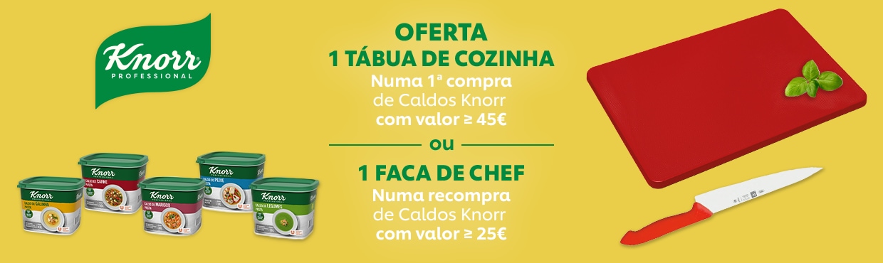 Este mês, temos uma oferta muito especial. Receba, na sua primeira encomenda de Caldos Knorr (de valor igual ou superior a 45€), uma tábua de cozinha ou, caso de uma recompra (de valor igual ou superior a 25€) uma faca! Não perca a oportunidade!
