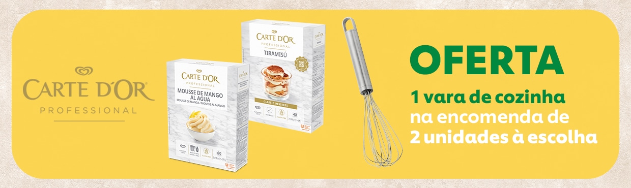 Este mês, exprimente novas receitas,encomende duas unidades Carte D’Or Tiramisú, Carte D’Or Mousse de Manga ou uma de cada e receba uma vara de cozinha ! Aproveite a oferta!