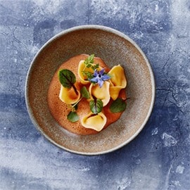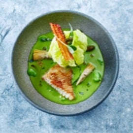 Mergulhe o peixe num caldo ou molho. Por exemplo, estes tortellini com molho de marisco ou vieiras com chicória, espuma de trufa, queijo de cabra e gambas.
