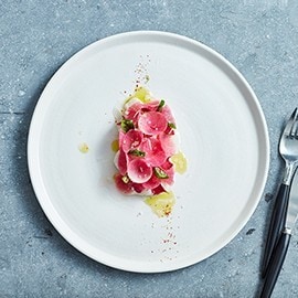 As camadas oferecem um elemento de diversão e surpresa ao prato. Pense no efeito de um arroz tufado a tapar uma carne suculenta de caranguejo, uns rabanetes finamente cortados a esconder um saboroso tártaro de Robalo...