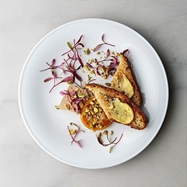 Fazer fitas ou pedaços de vegetais e espalhar ervas num prato como apontamento para um efeito de empratamento aparentemente sem esforço. ‘Gone Fishing’, do Chef e Food Stylist Dinamarquês Mikkel Karstadt, é uma boa inspiração; siga-o no Instagram.
