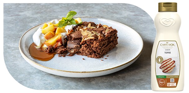Ofereça aos seus clientes vegan uma sobremesa especial, use o Carte D’Or Topping Toffee para os surpreender.