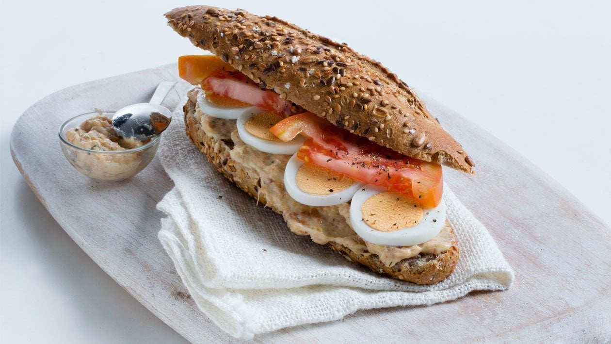 • Barrar o pão com a pasta de atum, colocar o ovo e depois o tomate e servir.