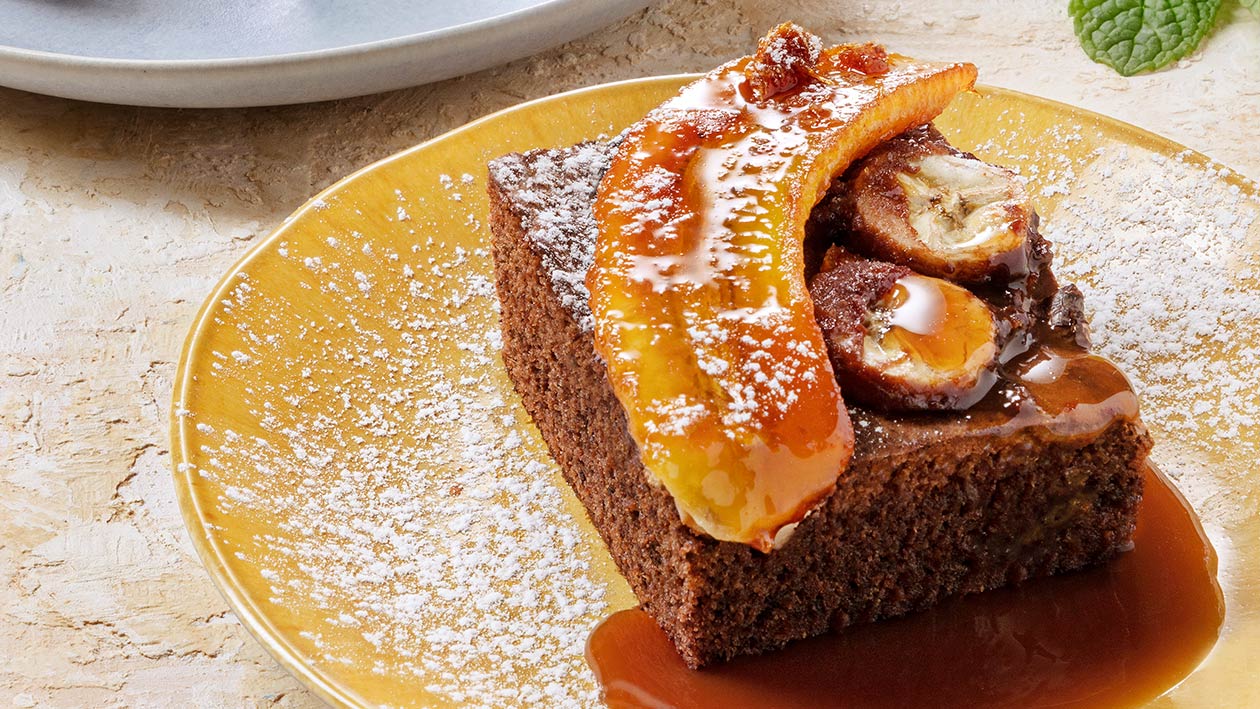 Para quem não quer deixar a fruta de fora das sobremesas, temos uma receita com banana. Caramelize uma metade para servir com o brownie, e envolva outra para um sabor irresistível.