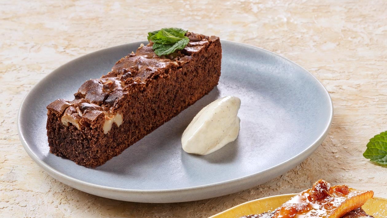 • Depois de frio, desenformar e cortar o Brownie em quadrados e servir com uma bola de gelado.