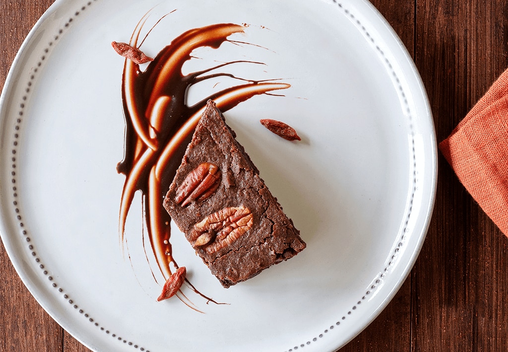 • Depois de frio, desenformar e cortar o brownie em quadrados e servir com Carte D'OR Topping Chocolate.