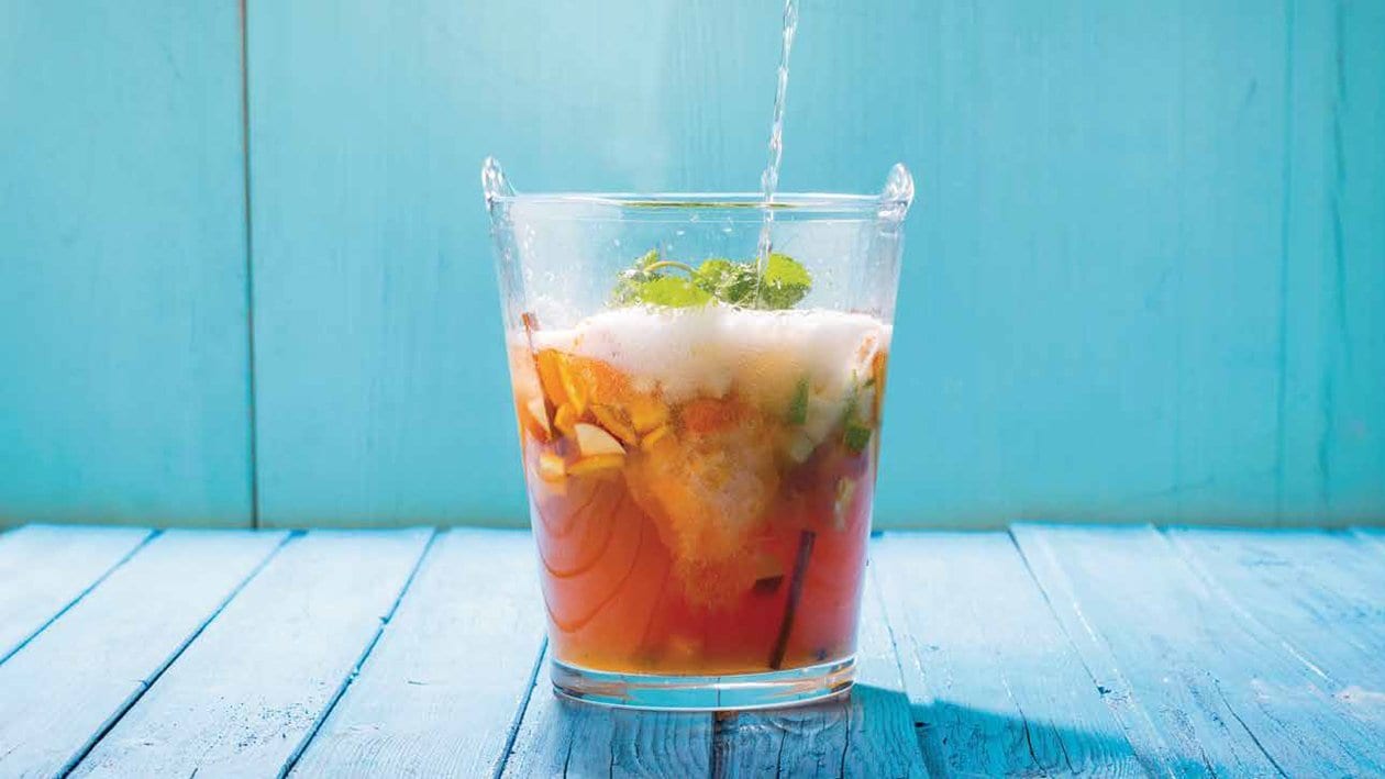 • Adicione à Infusão a fruta macerada, o gelo, ahortelã e por fim, a gasosa.
