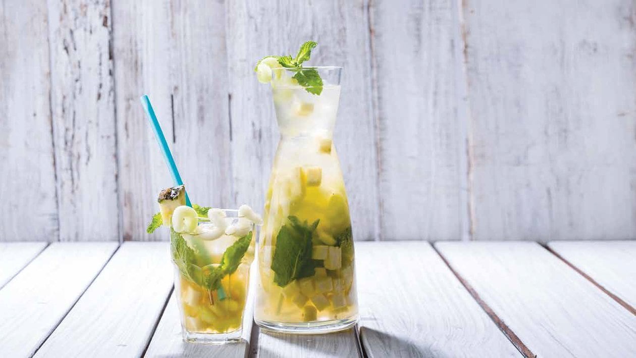 • Adicione à Infusão o ananás, a meloa, o sumo de ananás e o gelo.