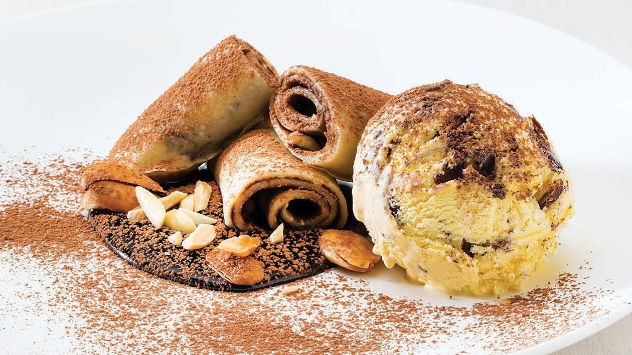 • Barrar o crepe com Carte D'Or Topping de Chocolate, enrolar e cortar em 3;