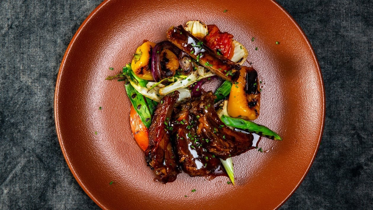 • Dispor num prato e servir com entrecosto partido em pedaços envolto no molho.