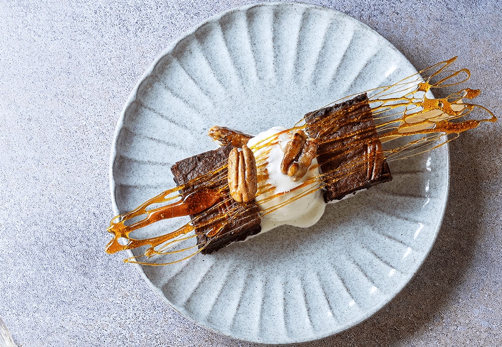 Esta sobremesa é uma forma diferente e atrativa de dar a conhecer Carte D´Or Brownie aos seus clientes. Esta espetada finalizada com um crocante de caramelo surpreende qualquer um.