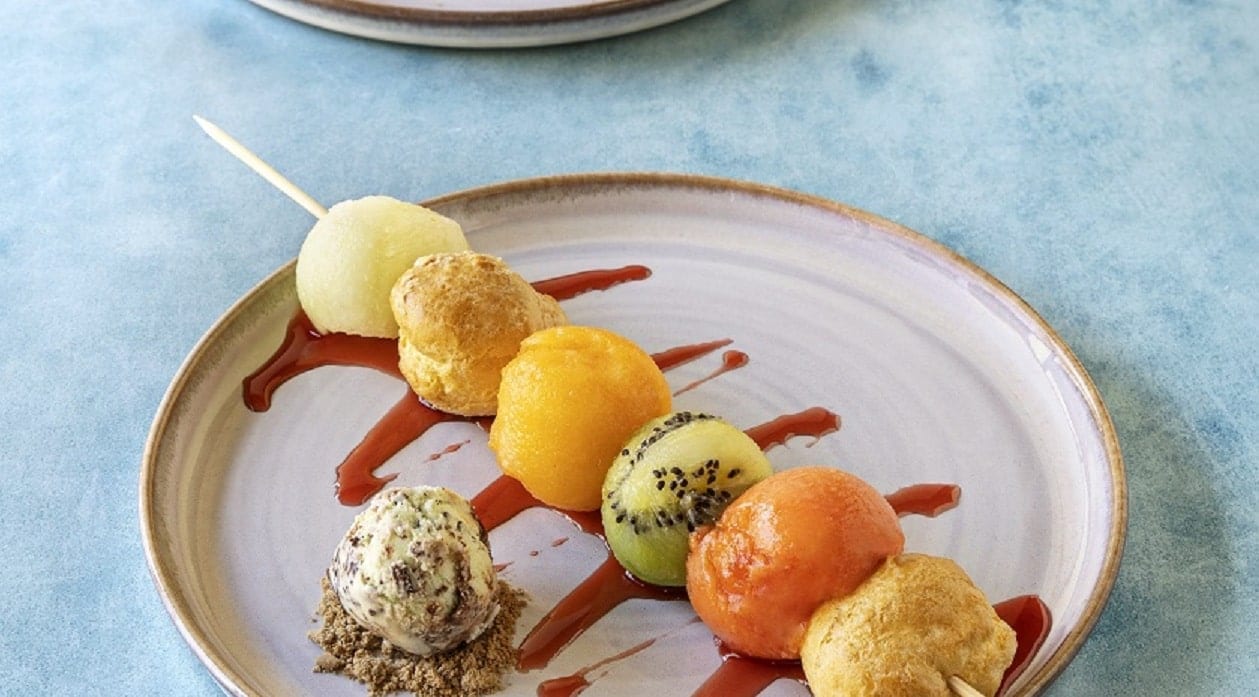 Uma forma diferente e divertida de servir profiteroles com uma massa deliciosa por fora e um recheio cremoso. Com bolas de fruta e bolas de gelado, esta é uma sobremesa típica francesa que vai ficar na memória dos clientes. Atreva-se a experimentar.