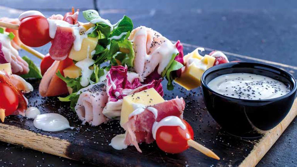 • Fazer o dipping com Hellmann's Molho Iogurte 3 Lt e sementes de papoila.