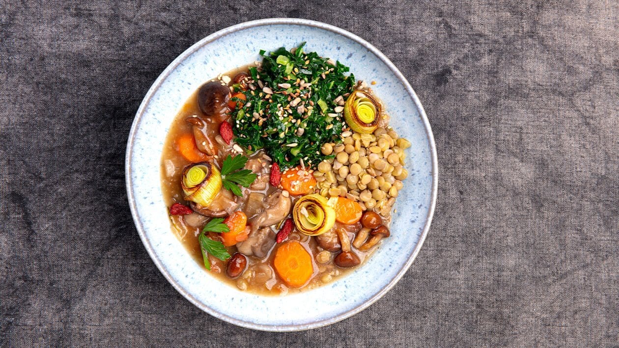 • Colocar as lentilhas no tacho juntamente com Knorr caldo líquido concentrado Vegetais preparado.