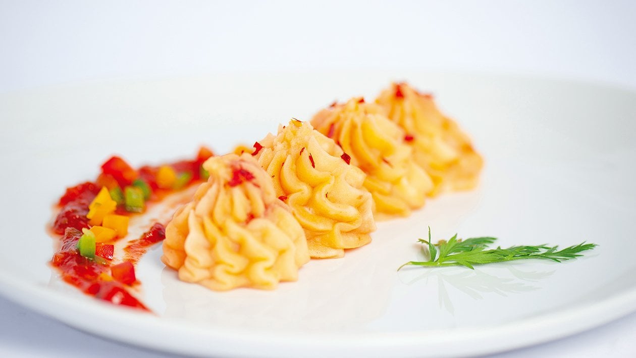 • Fazer o puré em água quente e misturar um pouco de molho;