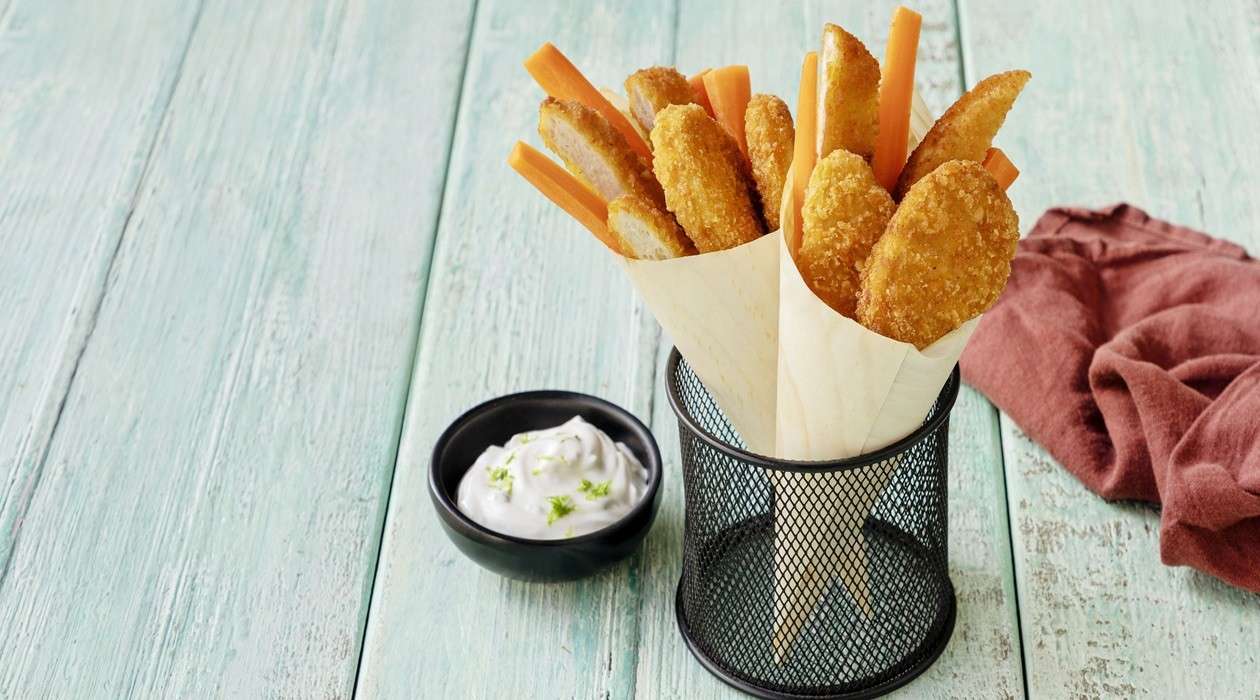 • Servir as frituras misturadas com a cenoura baby e colocar em cones.