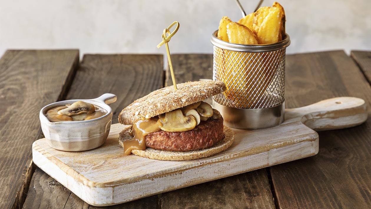 • Cozinhar osHambúrgueres Premium Vegan The Vegetarian Butcherdescongelados durante 8 min, virando a cada 2 min. Reservar.