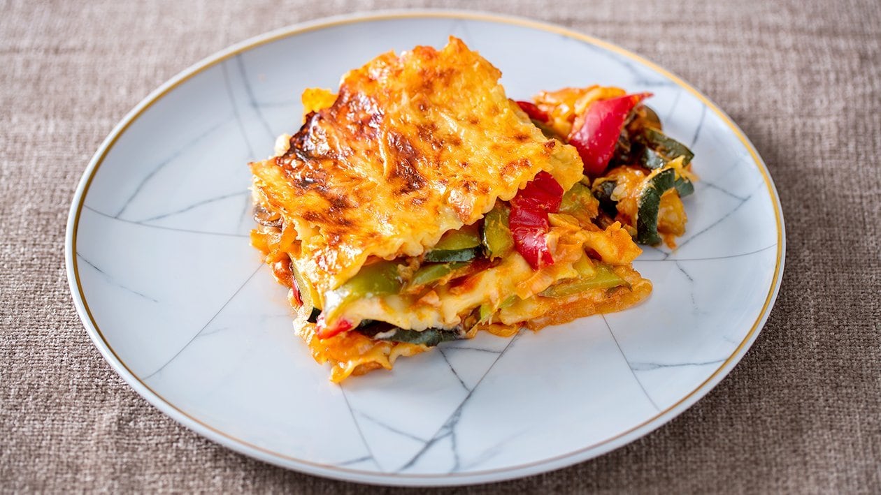 • Depois colocar Knorr massa Lasanha, a mistura de legumes e mais um pouco de molho béchamel.