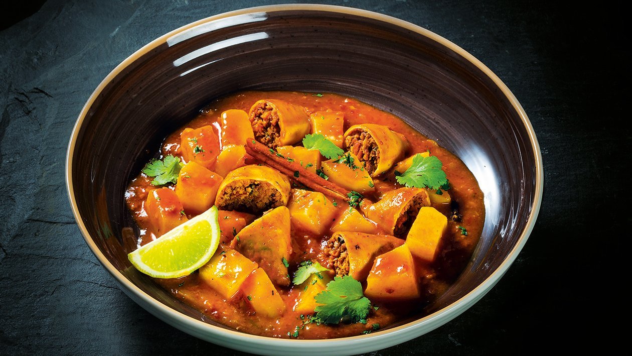 • Refogar bem a cebola e alho. Juntar Knorr Molho Tomate, Caril Vermelho, canela e cravinho.