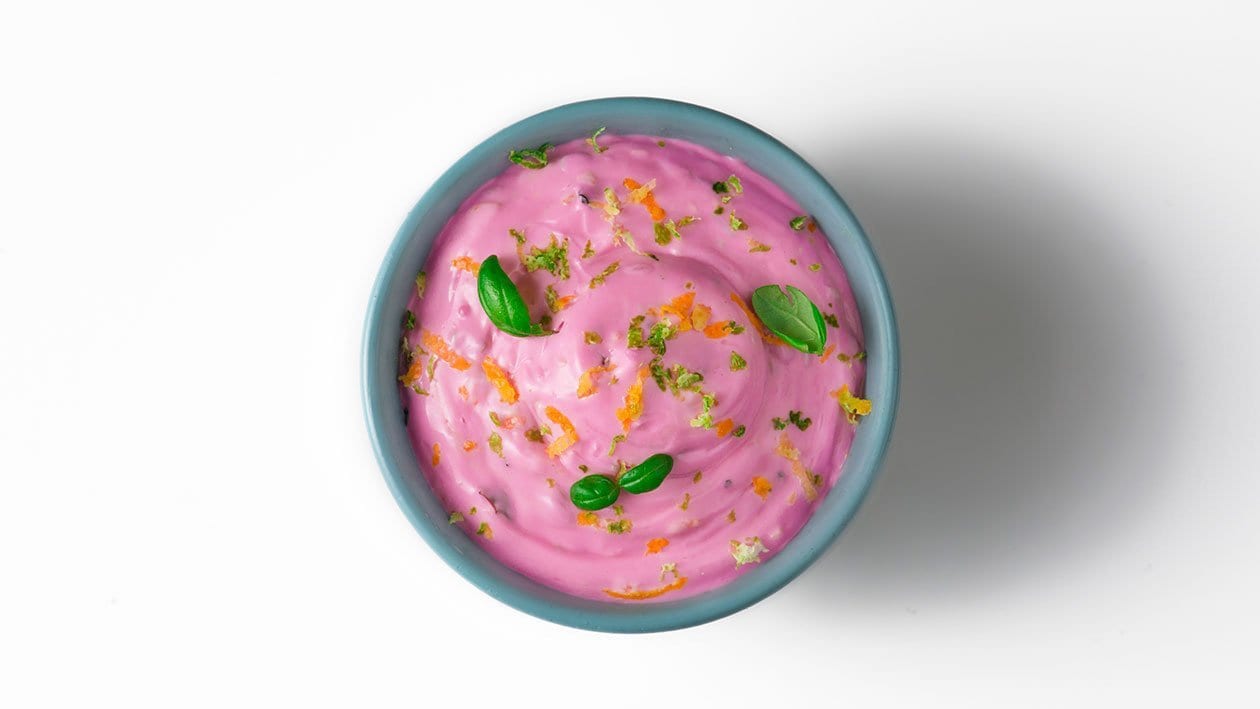 • Adicione à mistura, puré de beterraba e hortelã picada.
