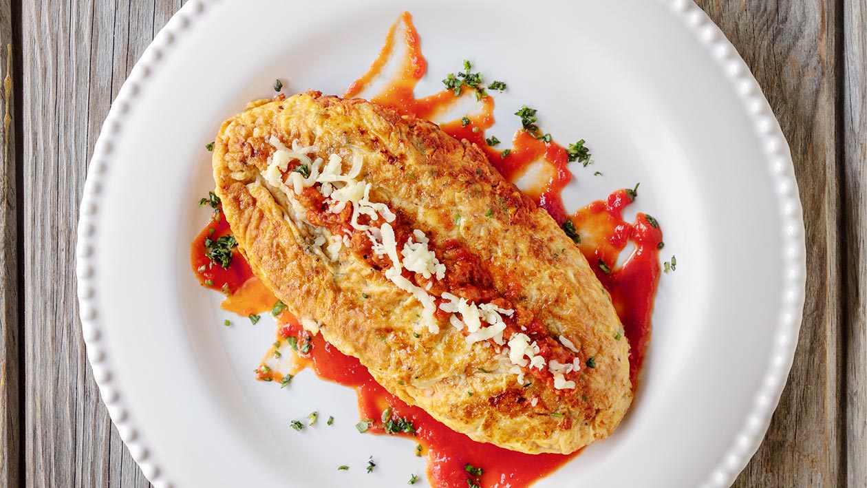 • No centro colocar um pouco de bolonhesa e de seguida enrolar a omelete.