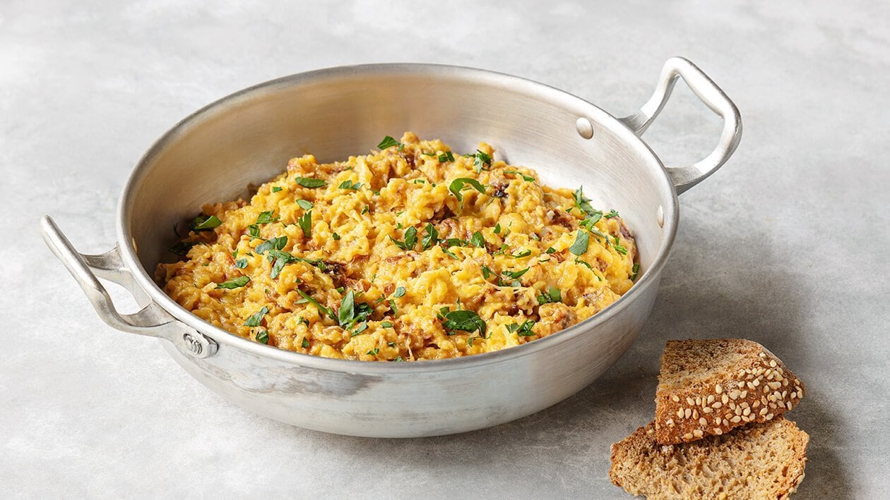 • Juntar Ovo Inteiro OvoChef e deixar cozinhar, mexendo até que fique cozinhado.