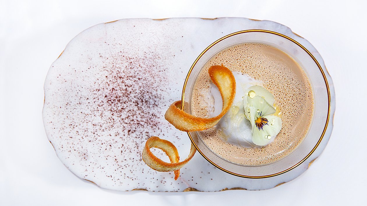 • Aquecero leite até formar uma espuma e servir no centro da panna cotta.