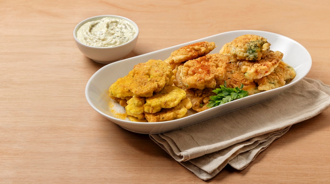 pataniscas de legumes acompanhadas com o delicioso Hellmann´s Molho Tártaro