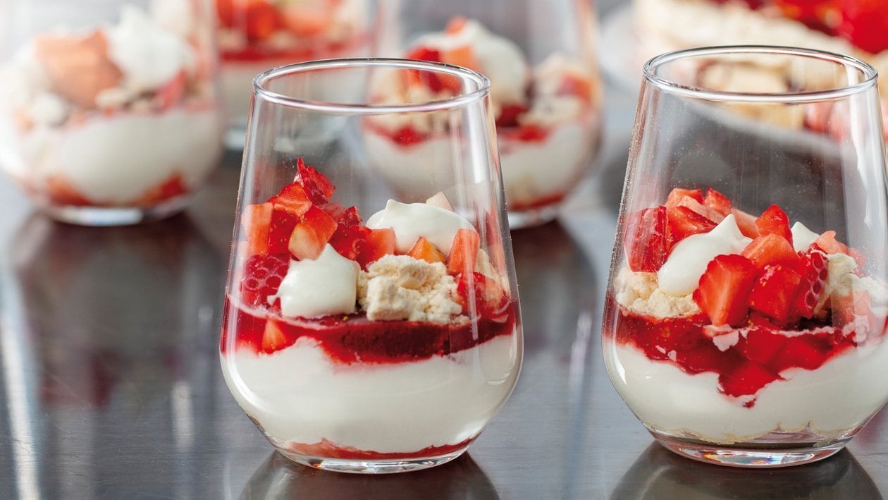 • Colocar a nata batida e sobre esta um pouco deCarte D´Or topping líquido de morango;