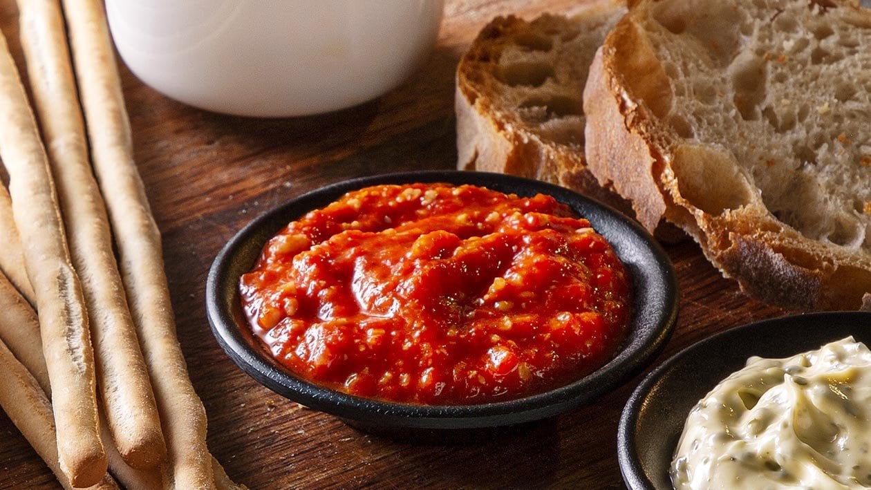 • Adicione num processador o pimento assado, a amêndoa, os coentros, o azeite e o sal até obter uma pasta homogénea.´