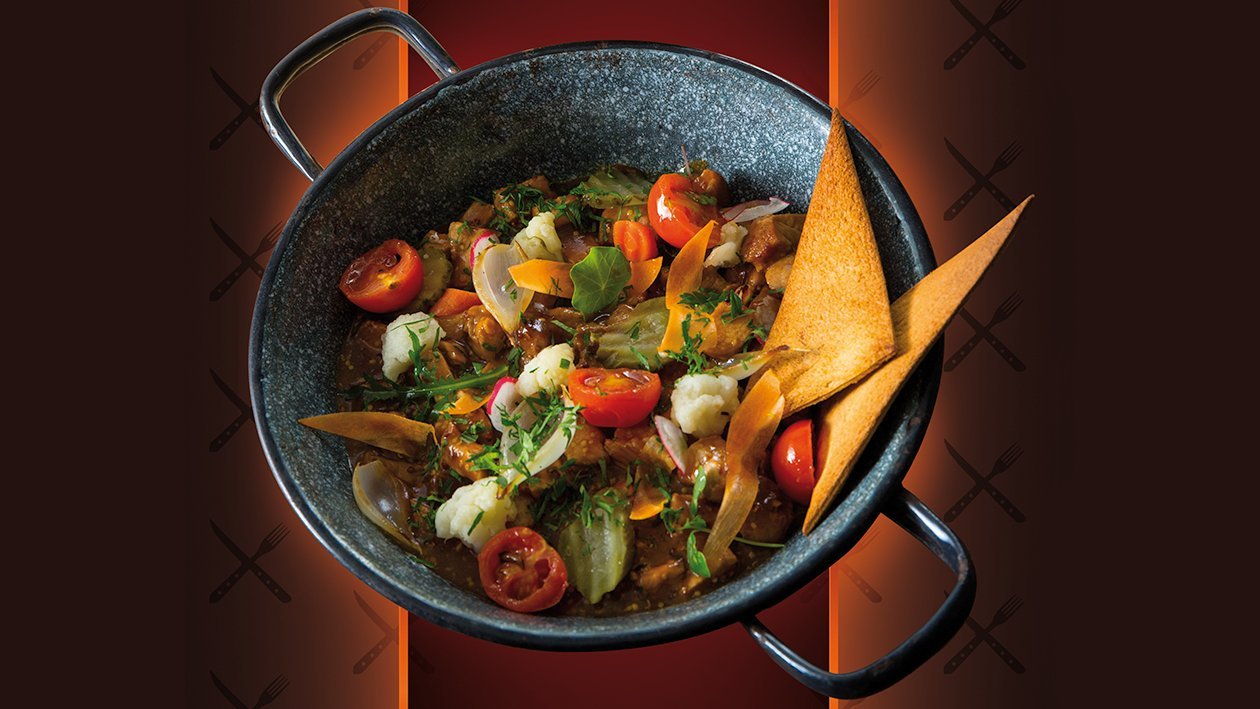 Para tornar o pica-pau mais colorido pode usar tomate cherry e uma mistura de várias ervas aromáticas.
