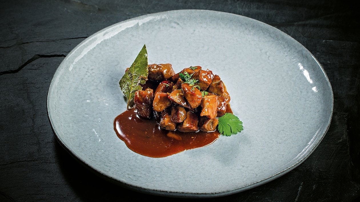 • Quando a carne estiver tenra, regar com o molho preparado e deixar reduzir um pouco. Temperar com sal e pimenta.