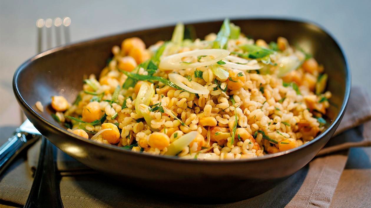 • Colocar a mistura de Knorr Bulgur numa tigela, juntar Knorr Caldo Líquido Concentrado de Vegetais a ferver.