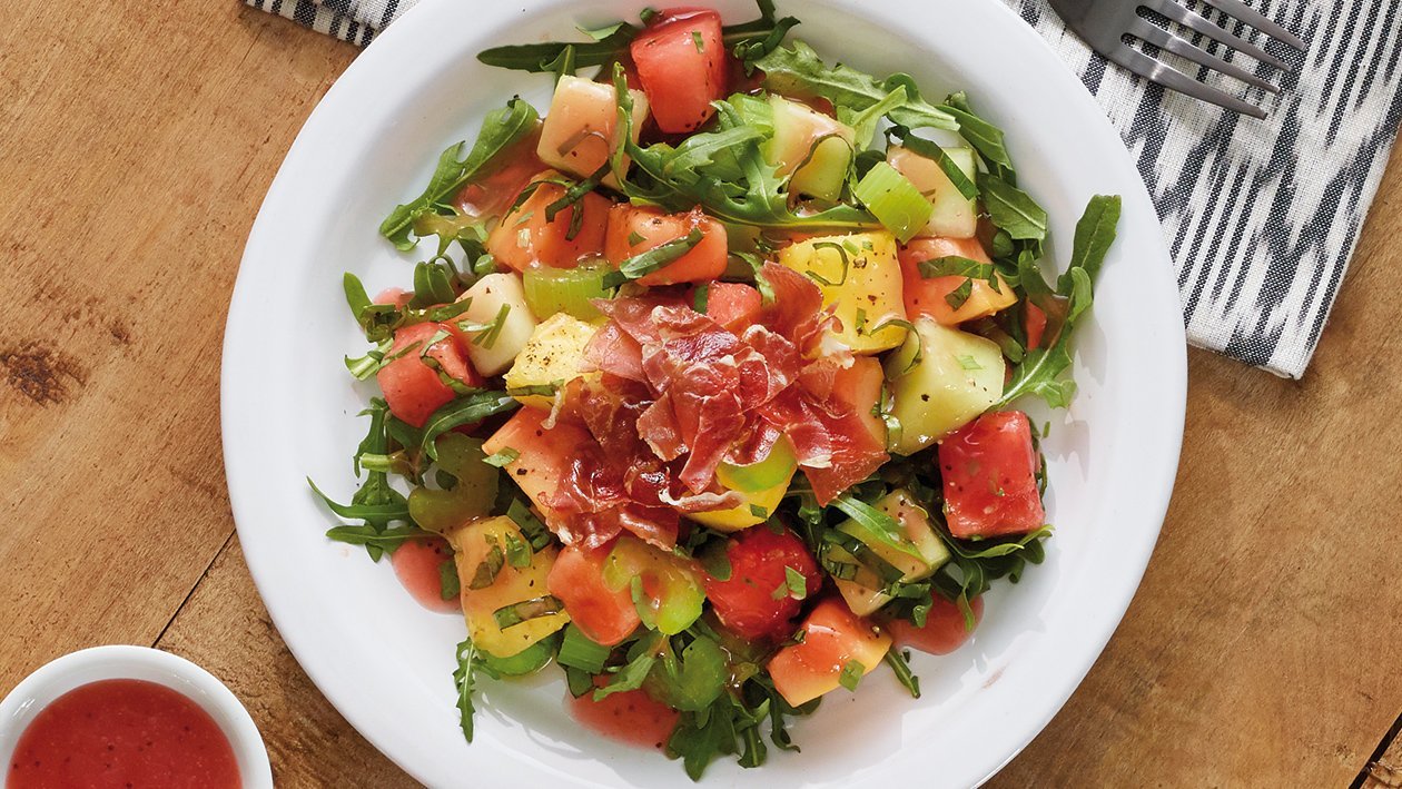 • Cortar em cubos médios a melancia, o melão, a papaia, o abacaxi e o aipo em cubos médios.
