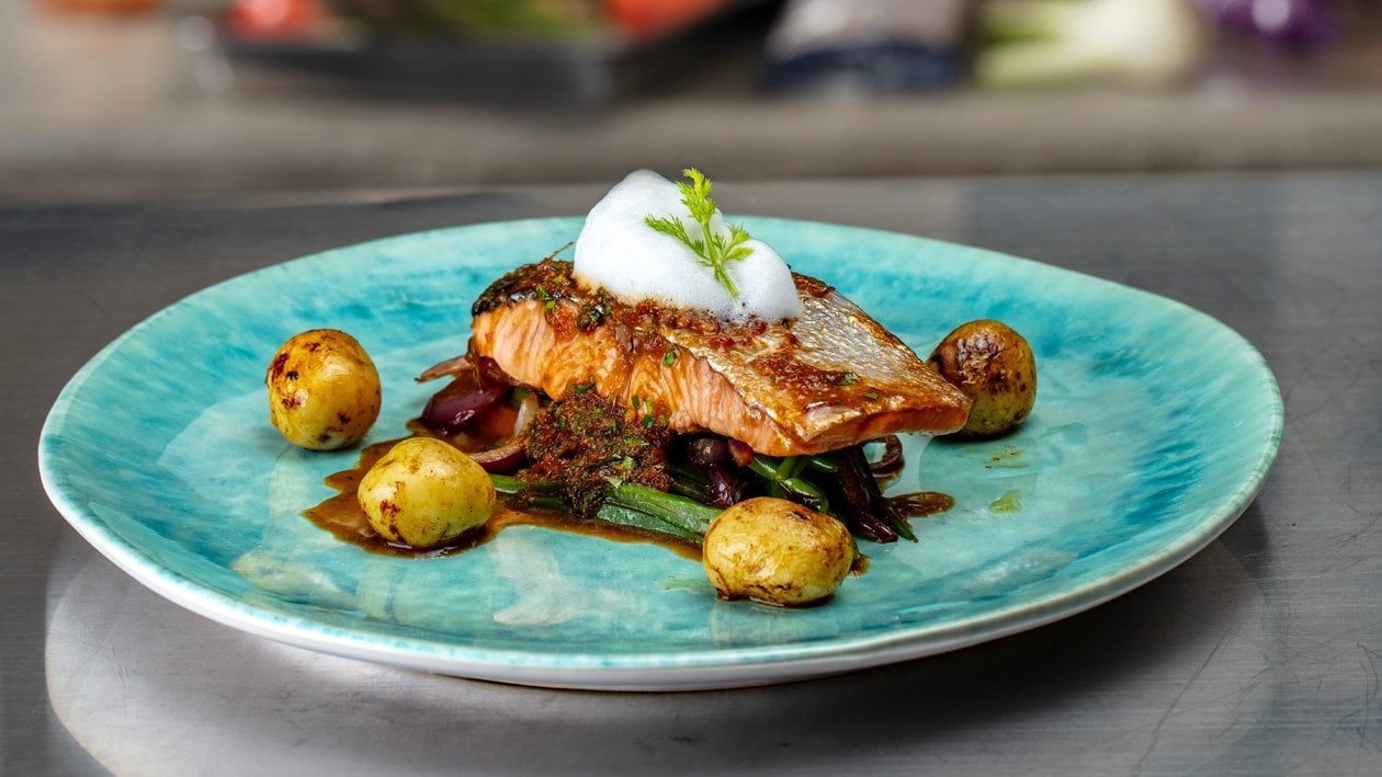 • Limpar o salmão de espinhas e escamas e marinar com Knorr molho Teriyaki 1Lt durante 40 min.