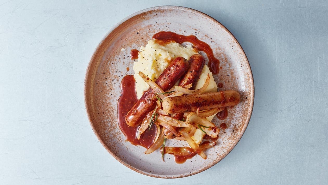 • Reaquecer todos os ingredients e empratar oKnorr puré desidratado Batatae as salsichas.