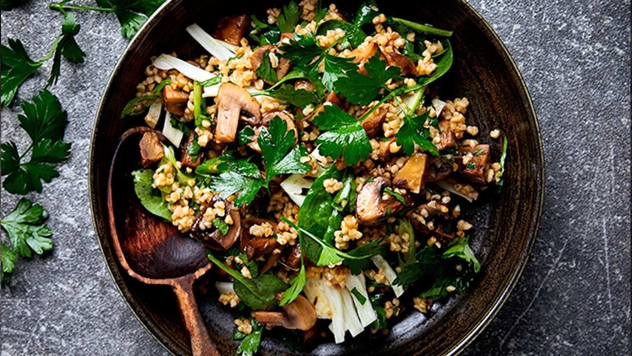 • Colocar a mistura de Knorr Bulgur numa tigela e juntar Knorr Caldo Líquido Concentrado de Vegetais a ferver.