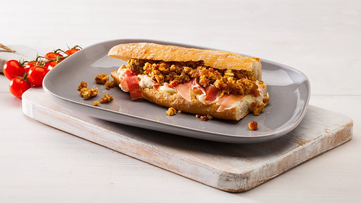 • Barrar a mistura do Hellmann's com presunto na baguete rústica.