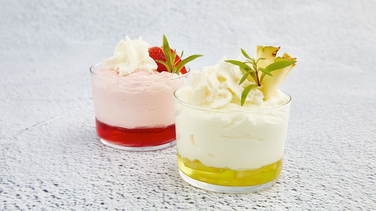 • Decorar com o chantilly, pedaços de ananas e um rebento de manjericão.