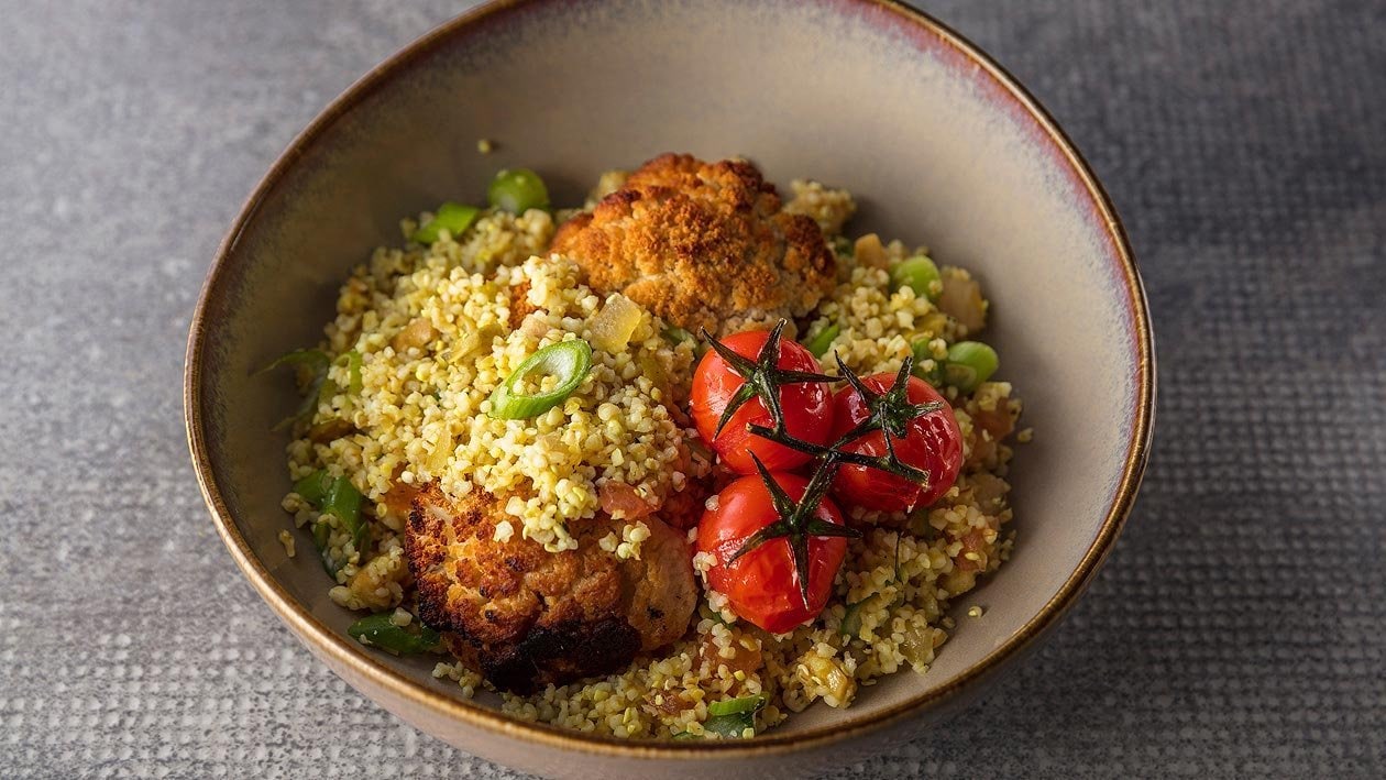 • Numa tigela colocar a mistura de Knorr Bulgur e temperar com sal, os cominhos e o caril.
