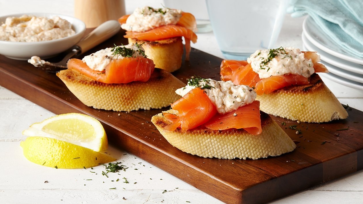 • Colocar o salmão fumado e por cima o preparado do queijo crème.