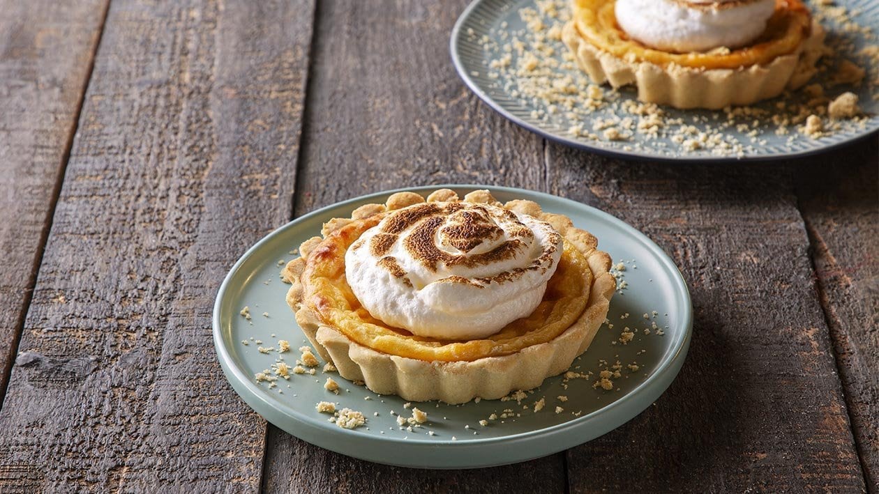 • Depois de retirar do forno a tarte e com a ajuda de um saco de pasteleiro, cobrir parte da tarte com o merengue e gratinar com a ajuda de um maçarico.