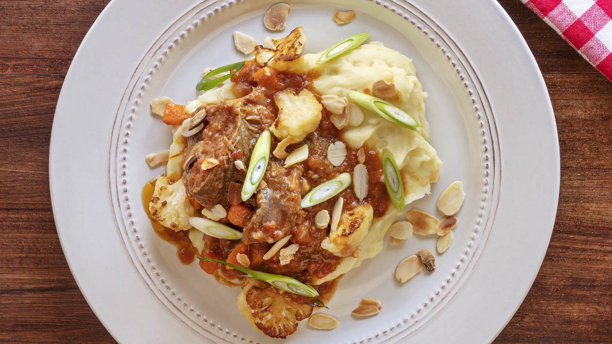 • Num prato, colocar o puré e por cima a carne com o molho.